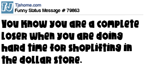 X says You know you are a complete loser when you are doing hard time for shoplifting in the dollar store.