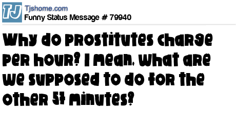 X Why do prostitutes charge per hour? I mean, what are we supposed to do for the other 57 minutes?