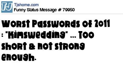 X says Worst Passwords of 2011 : "kimswedding" ... Too short & not strong enough.