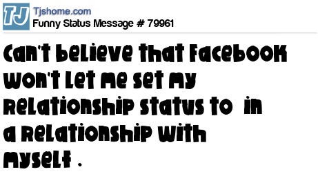 X says Can't believe that Facebook won't let me set my relationship status to “in a relationship with myself”.