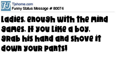 X Ladies, enough with the mind games. If you like a boy, grab his hand and shove it down your pants!