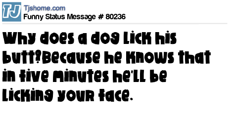X Why does a dog lick his butt?Because he knows that in five minutes he'll be licking your face.