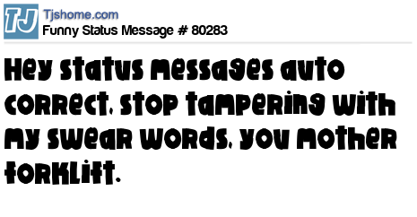 X Hey status messages auto correct, stop tampering with my swear words, you mother forklift.