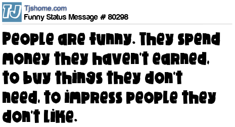 X People are funny. They spend money they haven't earned, to buy things they don't need, to impress people they don't like.