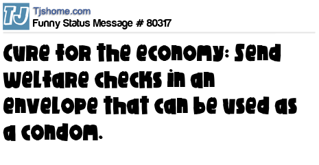 X Cure for the economy: Send welfare checks in an envelope that can be used as a condom.