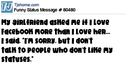 X  My girlfriend asked me if I love Facebook more than I love her... I said, "I'm sorry, but I don't talk to people who don't like my statuses."
