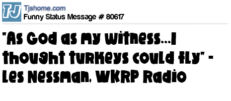 X "As God as my witness...I thought turkeys could fly" - Les Nessman, WKRP Radio
