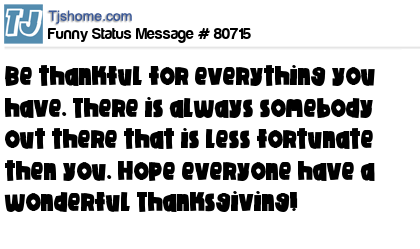 X says Be thankful for everything you have. There is always somebody out there that is less fortunate then you. Hope everyone have a wonderful Thanksgiving!