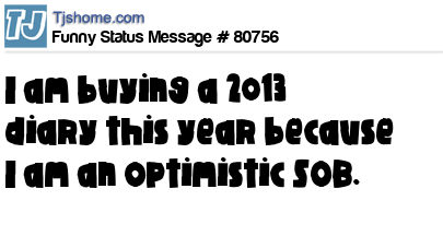 X says I am buying a 2013 diary this year because I am an optimistic SOB.