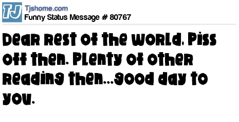 X Dear rest of the world, Piss off then. Plenty of other reading then...good day to you.