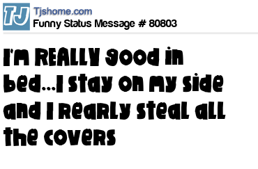 - # 208112 Not to brag or anything, but I’m pretty good in bed. I don’t snore, steal covers or pass gas.. and I only pee if something startles me.