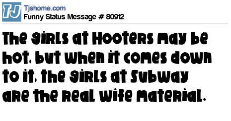 - # 114067 girls at hooters may be hot. but when it comes down to it, the ladies at subway are the real wife material..
