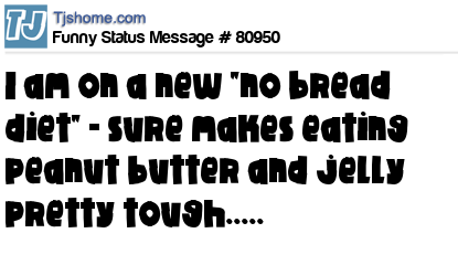 X is I am on a new "no bread diet" - sure makes eating peanut butter and jelly pretty tough.....