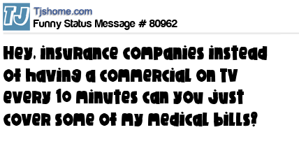 X Hey, insurance companies instead of having a commercial on TV every 10 minutes can you just cover some of my medical bills?