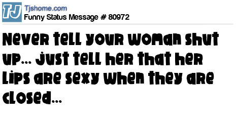 - # 15075 A Foolish Man tells a Woman to "Shut Da Hell Up", but a Wise Man tells Her That her Mouth is Extremely Beautiful When Her Lips are Closed.