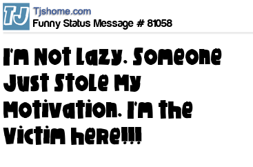 - # 35565 I'm not lazy. Someone just stole my motivation. I'm the victim here!