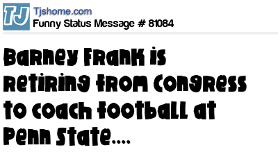 X  Barney Frank is retiring from Congress to coach football at Penn State....