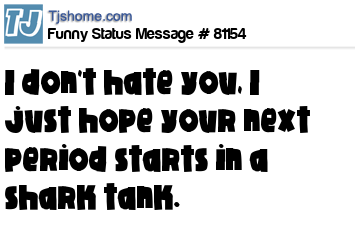 - # 95519 I don't hate you. I just hope your next period happens in a shark tank! (".)