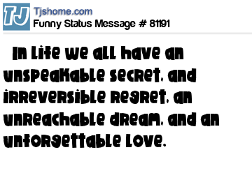 - # 28662 In life we all have an unspeakable secret, an irreversible regret, an unreachable dream and a unforgettable love.