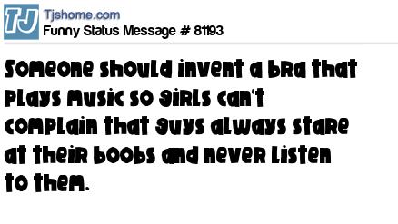 X Someone should invent a bra that plays music so girls can't complain that guys always stare at their boobs and never listen to them.