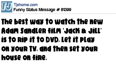 X  The best way to watch the new Adam Sandler film 'Jack & Jill' is to rip it to DVD, let it play on your TV, and then set your house on fire.