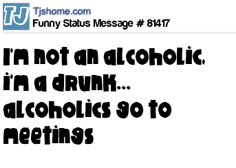 - # 85091 I'm not an alcoholic, alcoholics go to meetings, I'm a drunk, we go to parties.