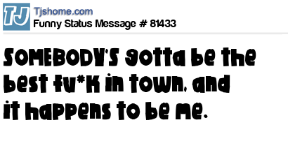 X  SOMEBODY'S gotta be the best fu*k in town, and it happens to be me.