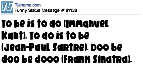 X  To be is to do (Immanuel Kant). To do is to be (Jean-Paul Sartre). Doo be doo be dooo (Frank Sinatra).