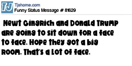 X Newt Gingrich and Donald Trump are going to sit down for a face to face. Hope they got a big room. That's a lot of face.