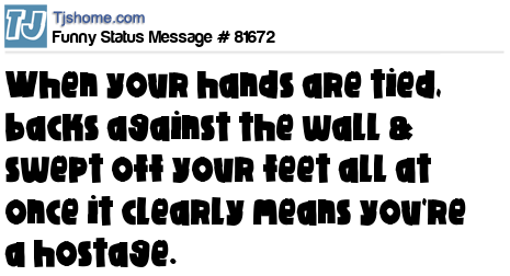 X When your hands are tied, backs against the wall & swept off your feet all at once it clearly means you're a hostage.