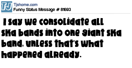 X I say we consolidate all ska bands into one giant ska band, unless that's what happened already.