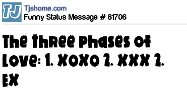 - # 82348 The three stages of a relationship: 1. xoxo, 2. xxx & 3. ex
