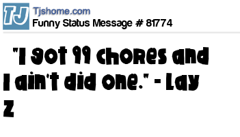 X is "I got 99 chores and I ain't did one." - Lay Z