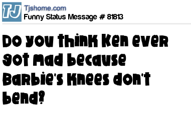 X Do you think Ken ever got mad because Barbie's knees don't bend?