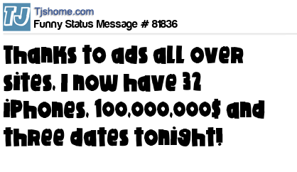 X Thanks to ads all over sites, I now have 32 iPhones, 100,000,000$ and three dates tonight!