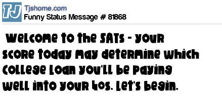 X Welcome to the SATs - your score today may determine which College Loan you'll be paying well into your 40s. Let's begin.