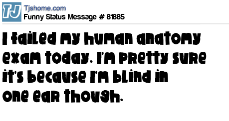 X is I failed my human anatomy exam today. I'm pretty sure it's because I'm blind in one ear though.