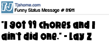 X says "I got 99 chores and I ain't did one." - Lay Z