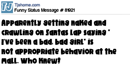 X Apparently getting naked and crawling on Santas lap saying " I've been a bad, bad girl" is not appropriate behavior at the mall. Who knew?