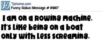 X I am on a rowing machine. It's like being on a boat only with less screaming.