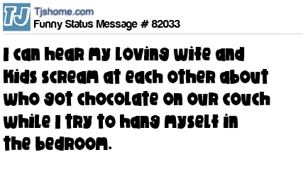 X is I can hear my loving wife and kids scream at each other about who got chocolate on our couch while I try to hang myself in the bedroom.