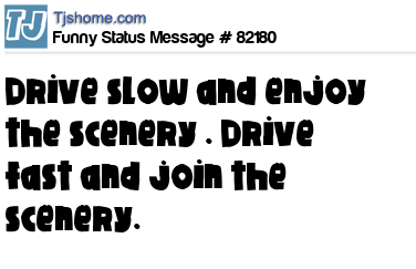 X Drive slow and enjoy the scenery . Drive fast and join the scenery.