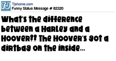 X is What's the difference between a Harley and a Hoover?? The Hoover's got a dirtbag on the inside...