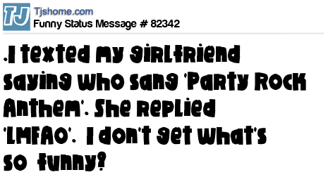 X is .I texted my girlfriend saying who sang 'Party Rock Anthem'. She replied 'LMFAO'. I don't get what's so funny?
