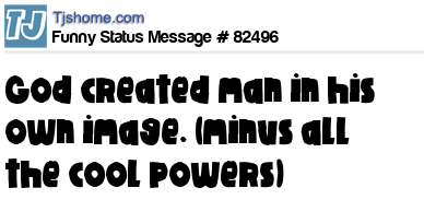 - # 59314 if God created us in his image why the Hell don't we have powers?