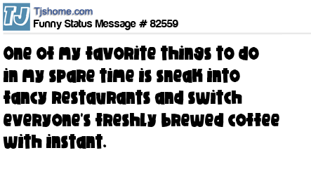 X says One of my favorite things to do in my spare time is sneak into fancy restaurants and switch everyone's freshly brewed coffee with instant.