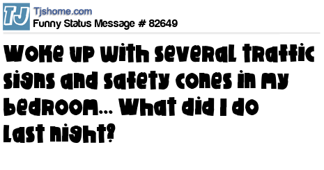 X has Woke up with several traffic signs and safety cones in my bedroom... What did I do last night?
