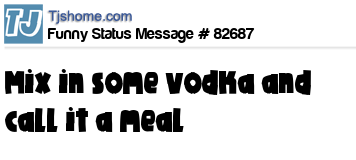 - # 81152 Turns out a crash diet doesn't mean having vodka with every meal and falling down the stairs at noon!