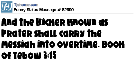 X is And the Kicker known as Prater shall carry the messiah into overtime. Book of Tebow 3:15