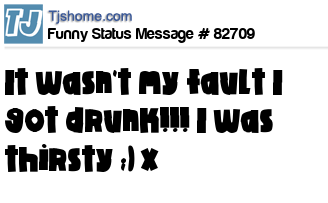 X is It wasn't my fault I got drunk!!! I was thirsty ;) x
